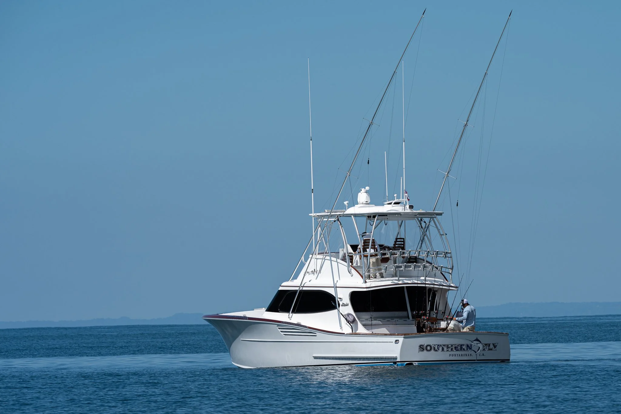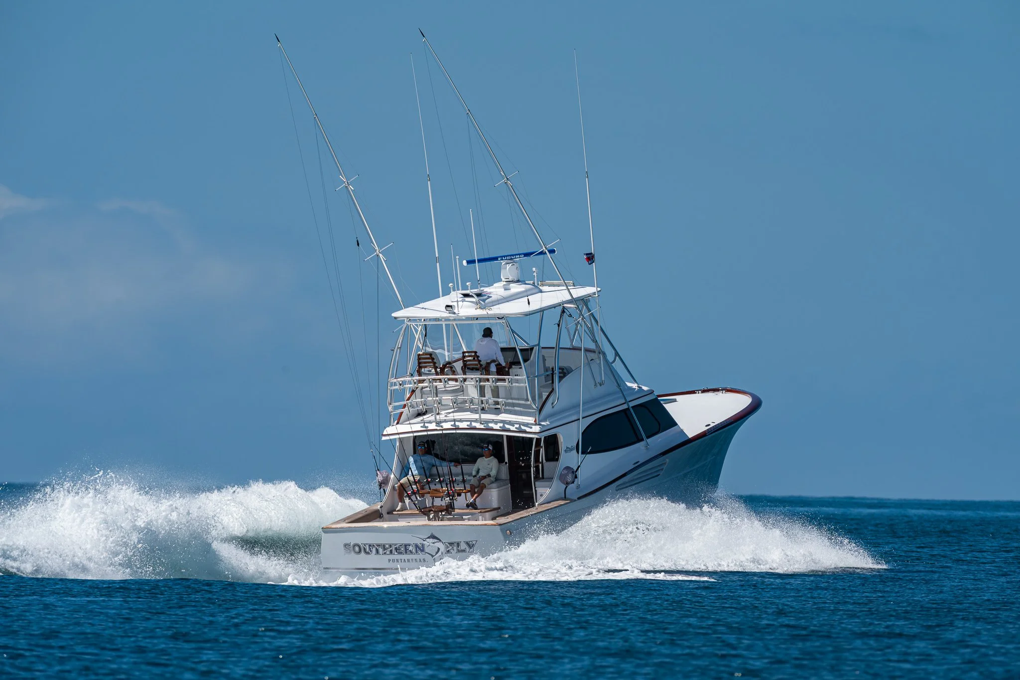 Southern Fly is a 50-foot sportfishing machine built for serious offshore days. Powered by twin C18 Caterpillar engines and rigged with new Shimano rods plus the fastest teaser rods on the market, she’s ready to hunt hard and deliver an unforgettable day on the Pacific.